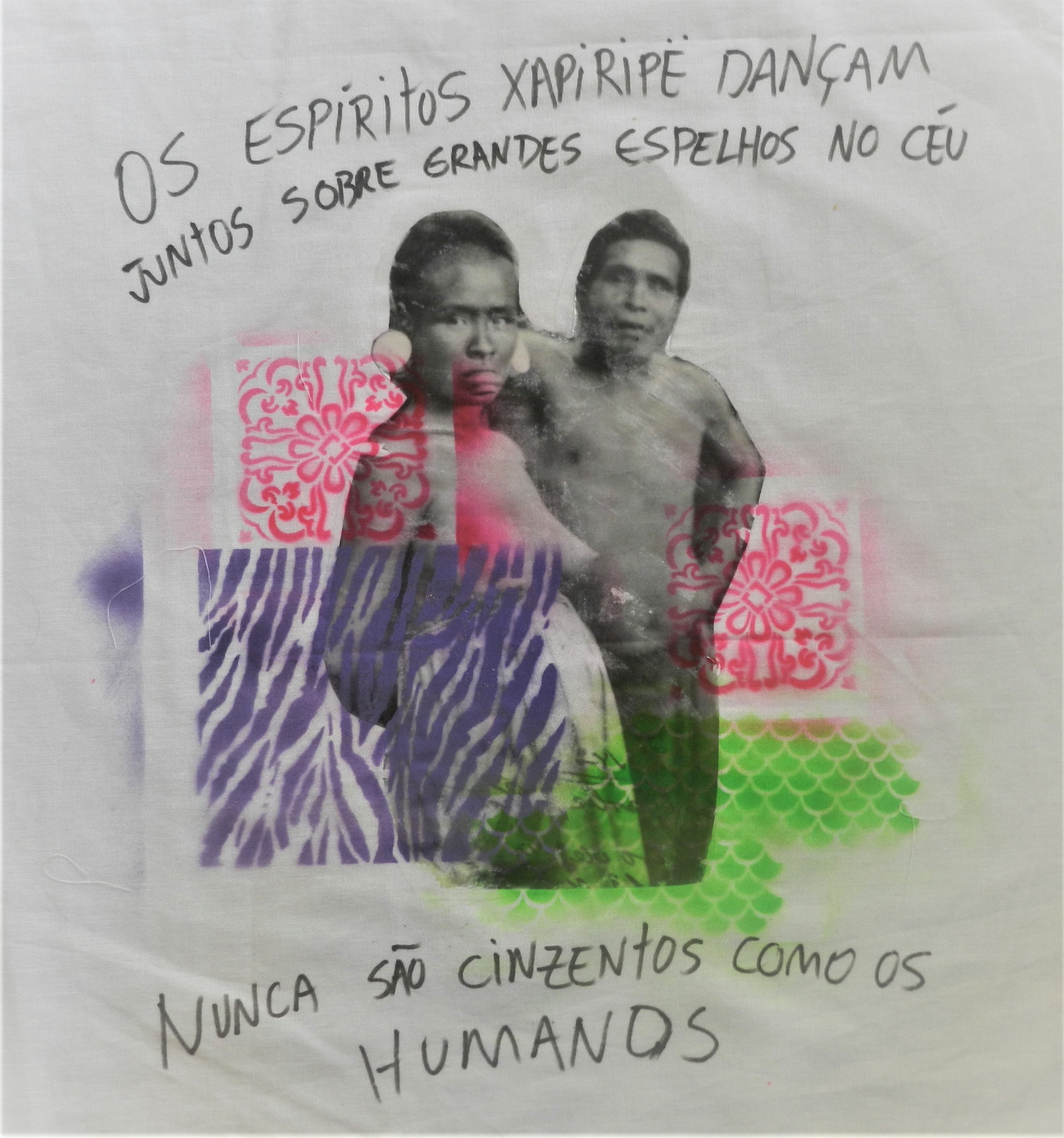 Inspired by the reading of the indigenous book A Queda do Céu (The Sky's Fall) by Davi Kopenawa Yanomami and Bruce Albert. This work resulted in a large installation in the main hall of the UFSB with fabrics, embroidery, video, and other objects (2019).